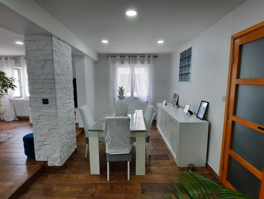CREIL au calme, très belle maison d'environ 165m² habitable comprenant: entrée, cuisine, séjour double donnant sur balcon, wc. ETAGE: palier desservant 2 chambres, dressing, salle d'eau. En RDJ: une cuisine équipée, séjour, chambre avec dressing, salle d'eau, wc, chaufferie/lingerie. C/C gaz, climatisation réversible, terrasse et terrain clos d'environ 470m² avec dépendance et cuisine d'été, accès pour plusieurs véhicules! Très belle prestations!!